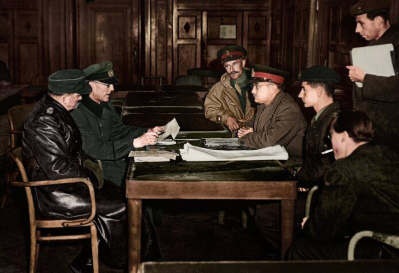 4 mei 1945 Ondertekening van het capitulatiedocument op de Lüneburger Heide in de legertent van de Britse generaal Montgomery