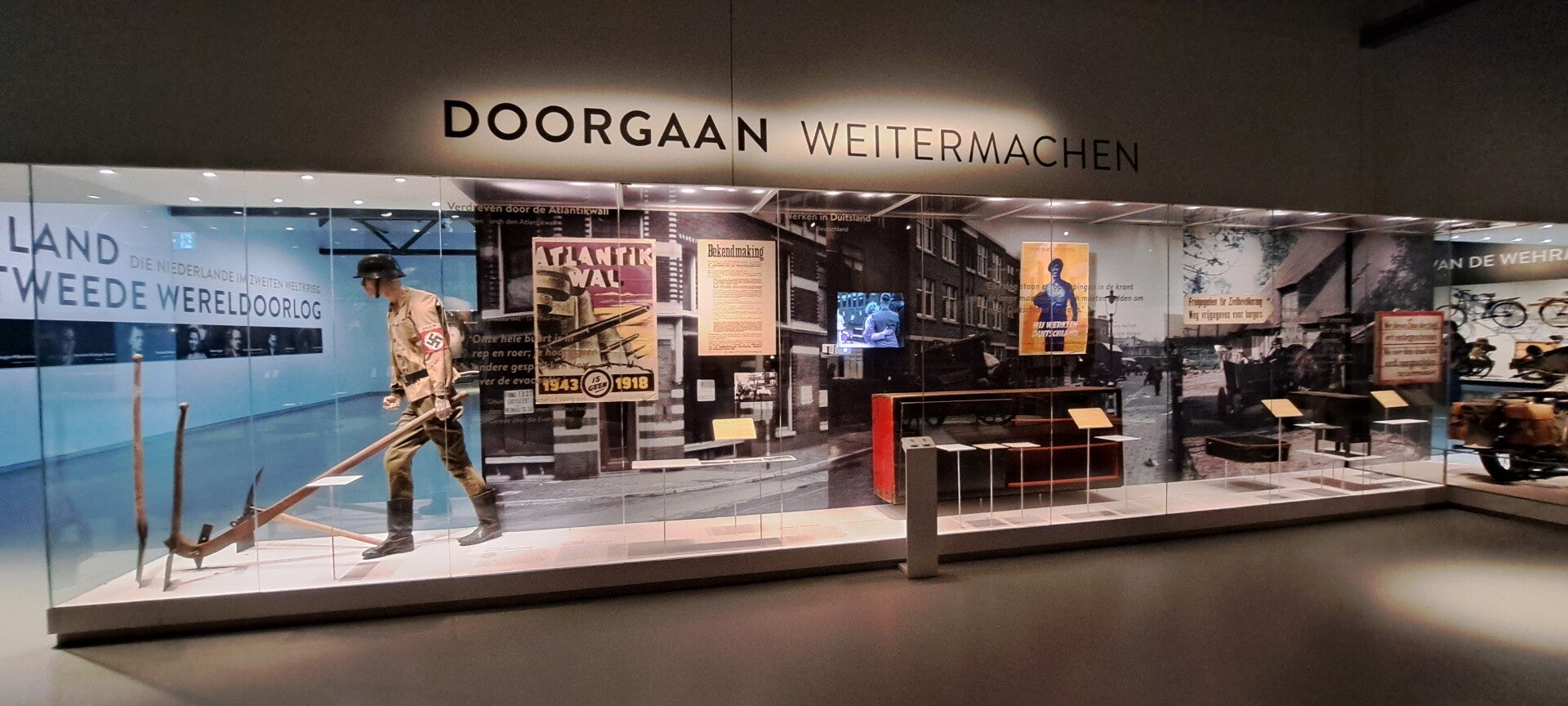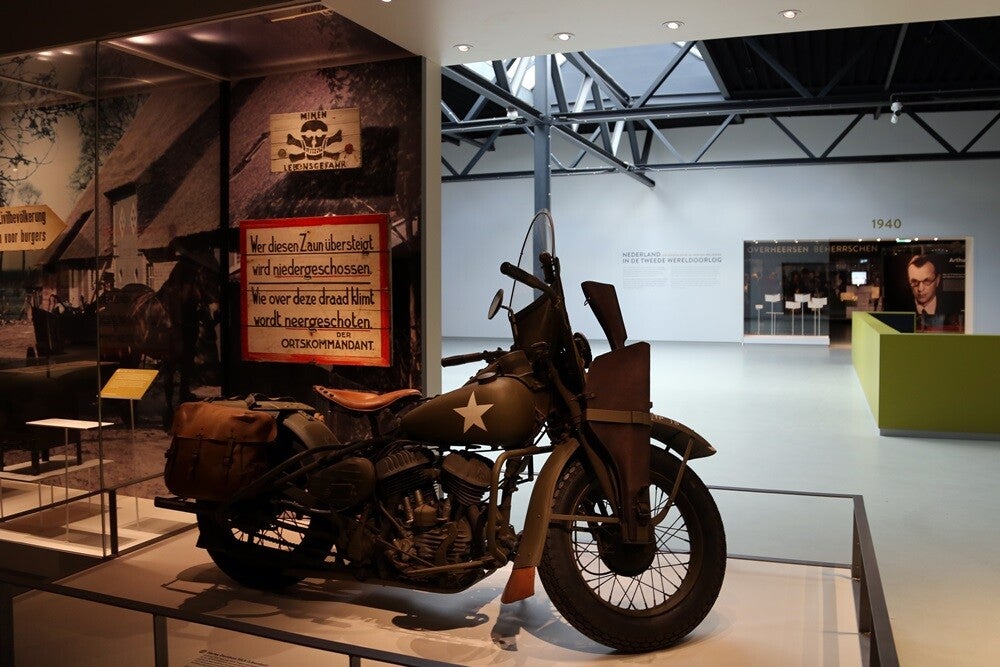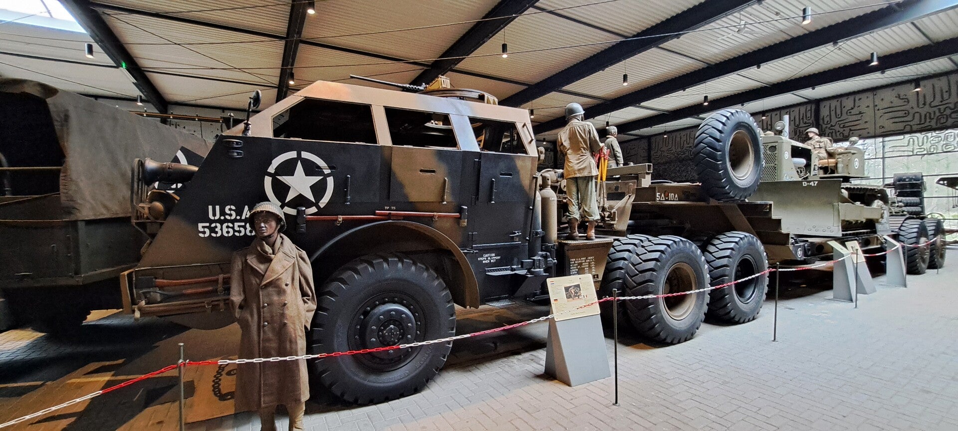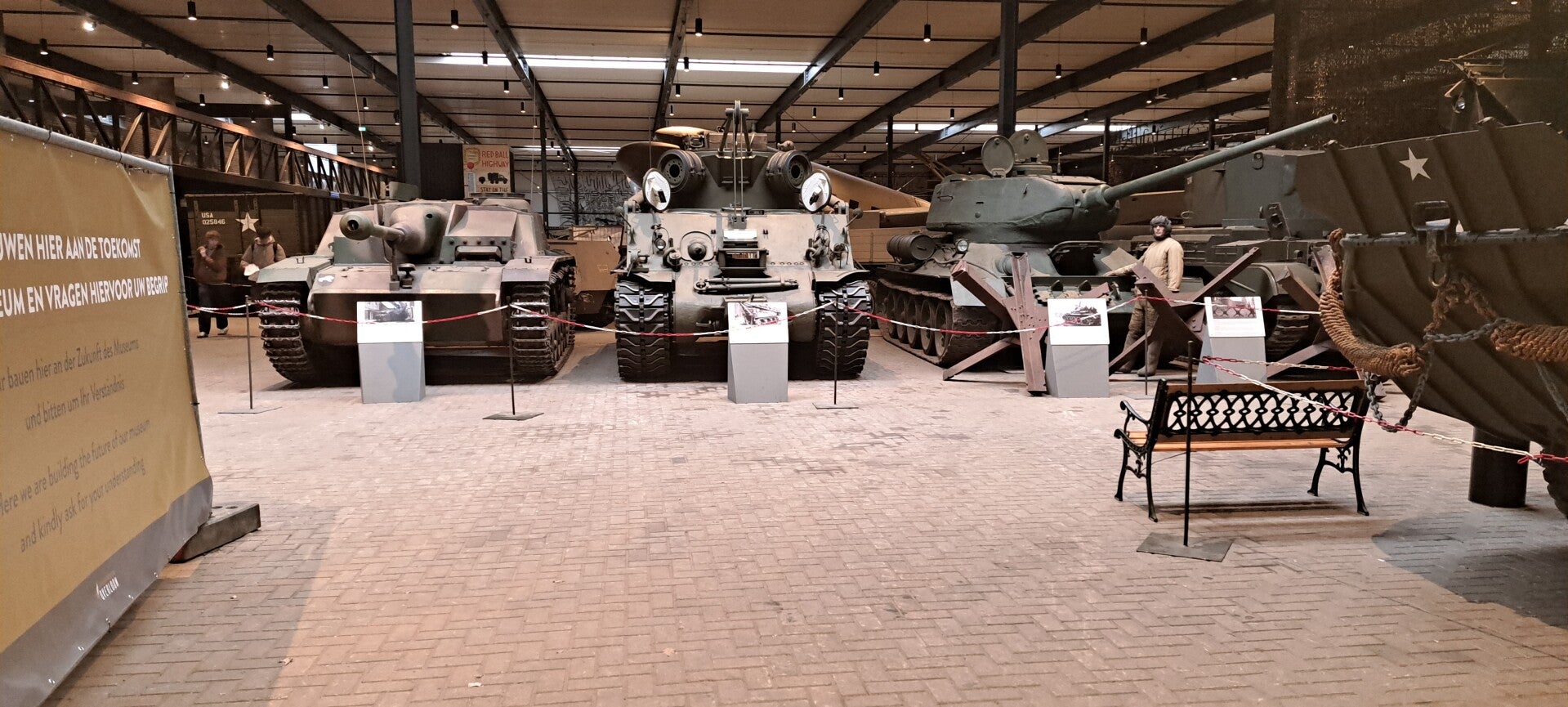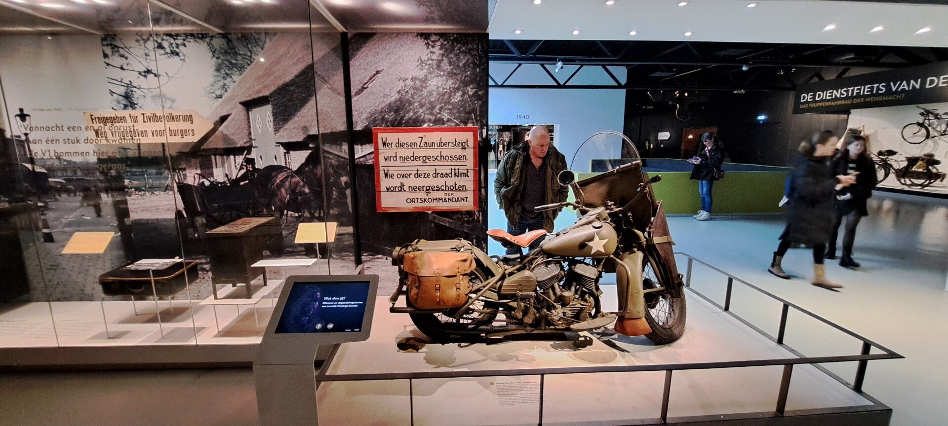 Op vrijdag 16 februari 2024 bezochten we het altijd weer indrukwekkende oorlogsmuseum Overloon. De expositie D-Day 6-6-1944 was al een tijd niet meer te bekijken, maar nu stonden er schermen rondom een groot gebied in de hal met voertuigen waarin een nieuwe expositie wordt ingericht de komende maanden. We hebben een vriendenkaart aangeschaft zodat we nu wanneer we willen het prachtige museum kunnen bezoeken en de ontwikkelingen blijven volgen. Ondanks de transitie waarin de hal met voertuigen zich bevindt, blijft het mooi er doorheen te lopen. Ook altijd weer indrukwekkend is de expositie over de jaren 1940-1945. De vitrine met Duitse rijwielen is van de kelder naar het begin van de expositie verhuisd. Heel bijzonder om te zien. Wist niet dat er op zoveel verschillende wijzen van de fiets gebruikt werd gemaakt, zelfs rijwielen met een pantserfaust! En een rijwiel in een koffier die met parachute werd neergelaten. Er is meer audio te beluisteren bij de piano waarop Seyss-Inquart speelde (wist niet dat die muzikaal was) en verder is er de gepantserde geldauto waarmee de familie naar IJmuiden werd gereden op 10 mei 1940 om met de boot naar Engeland te gaan. En verder de stoel van Mussert en een roeiboot waarmee Engelandvaarders naar Engeland probeerden te ontkomen. Bekijk de foto's die ik heb gemaakt.