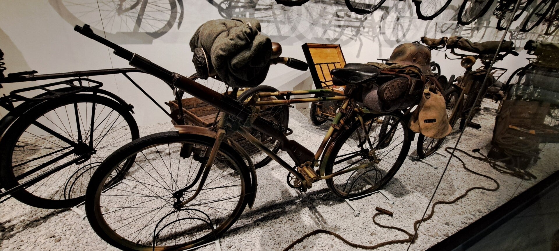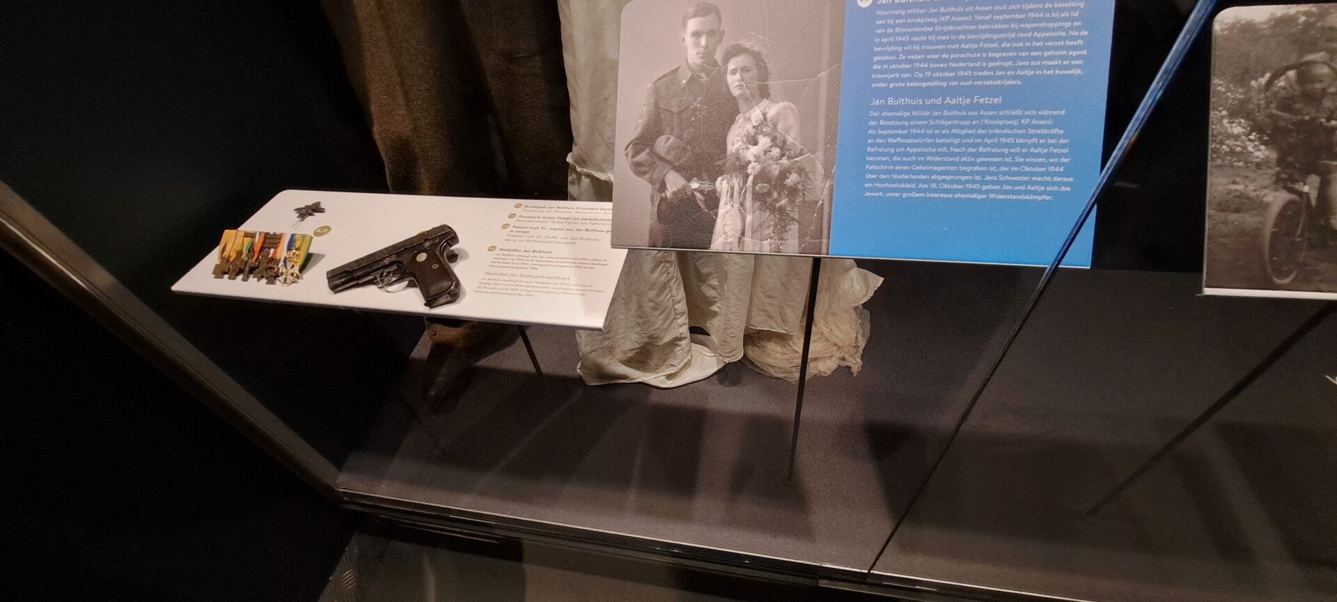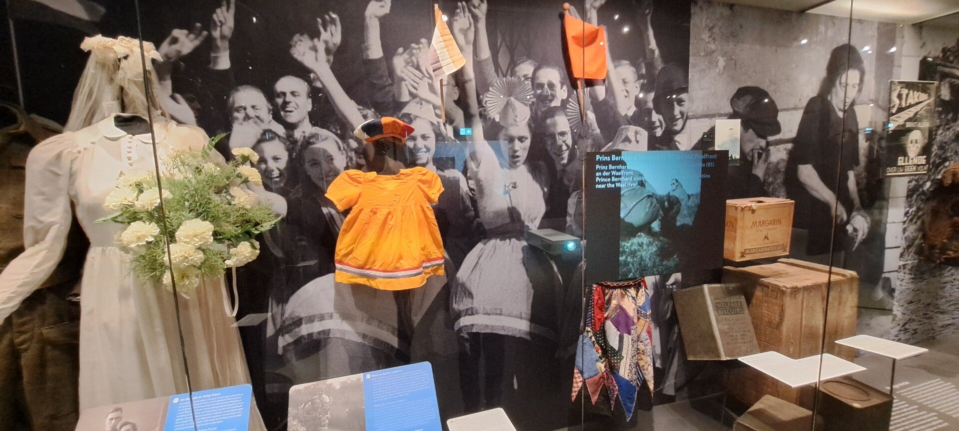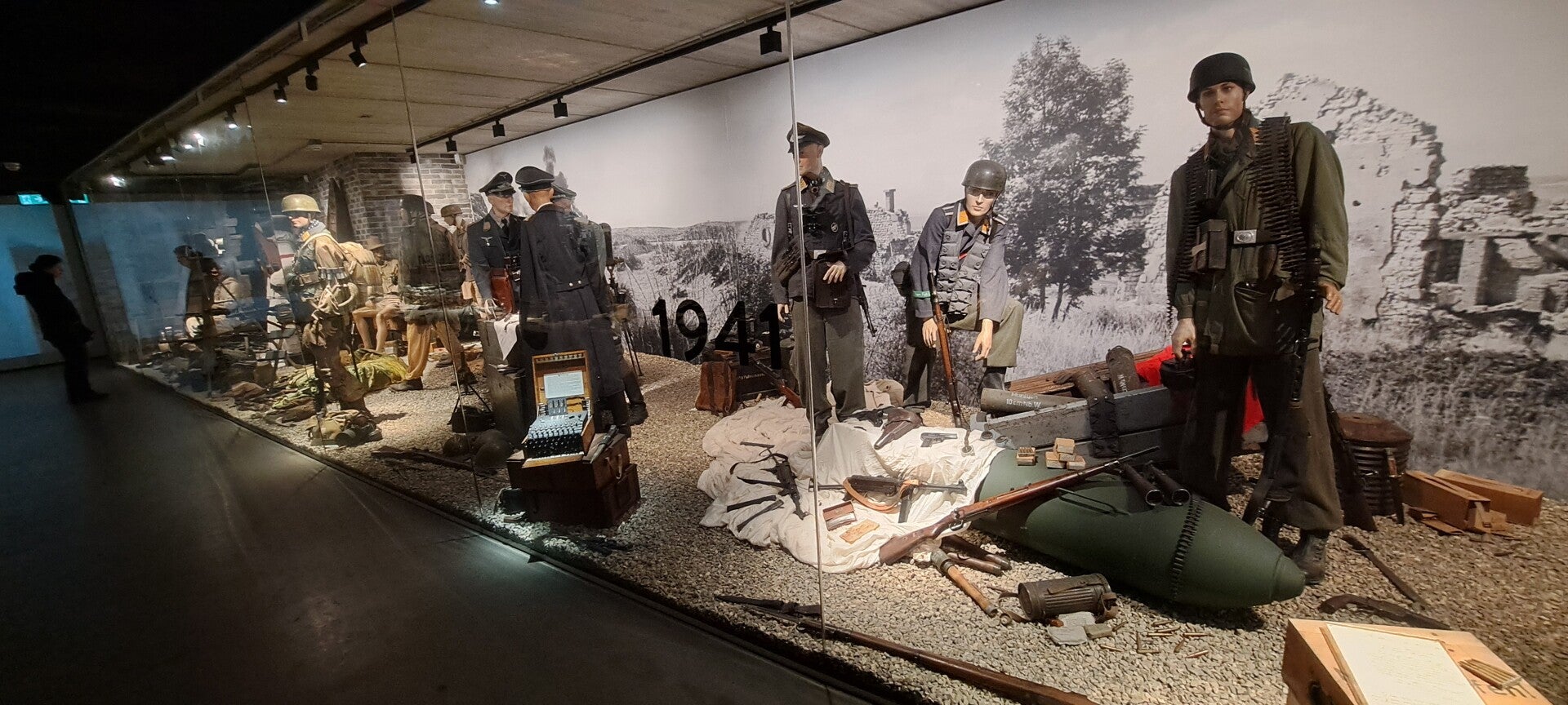 Op vrijdag 16 februari 2024 bezochten we het altijd weer indrukwekkende oorlogsmuseum Overloon. De expositie D-Day 6-6-1944 was al een tijd niet meer te bekijken, maar nu stonden er schermen rondom een groot gebied in de hal met voertuigen waarin een nieuwe expositie wordt ingericht de komende maanden. We hebben een vriendenkaart aangeschaft zodat we nu wanneer we willen het prachtige museum kunnen bezoeken en de ontwikkelingen blijven volgen. Ondanks de transitie waarin de hal met voertuigen zich bevindt, blijft het mooi er doorheen te lopen. Ook altijd weer indrukwekkend is de expositie over de jaren 1940-1945. De vitrine met Duitse rijwielen is van de kelder naar het begin van de expositie verhuisd. Heel bijzonder om te zien. Wist niet dat er op zoveel verschillende wijzen van de fiets gebruikt werd gemaakt, zelfs rijwielen met een pantserfaust! En een rijwiel in een koffier die met parachute werd neergelaten. Er is meer audio te beluisteren bij de piano waarop Seyss-Inquart speelde (wist niet dat die muzikaal was) en verder is er de gepantserde geldauto waarmee de familie naar IJmuiden werd gereden op 10 mei 1940 om met de boot naar Engeland te gaan. En verder de stoel van Mussert en een roeiboot waarmee Engelandvaarders naar Engeland probeerden te ontkomen. Bekijk de foto's die ik heb gemaakt.