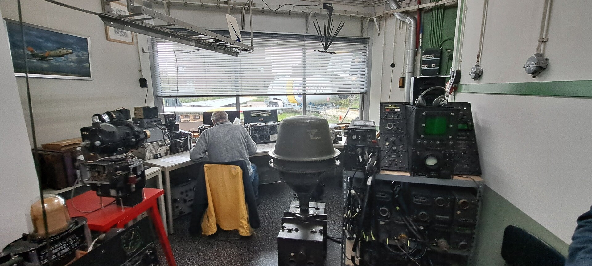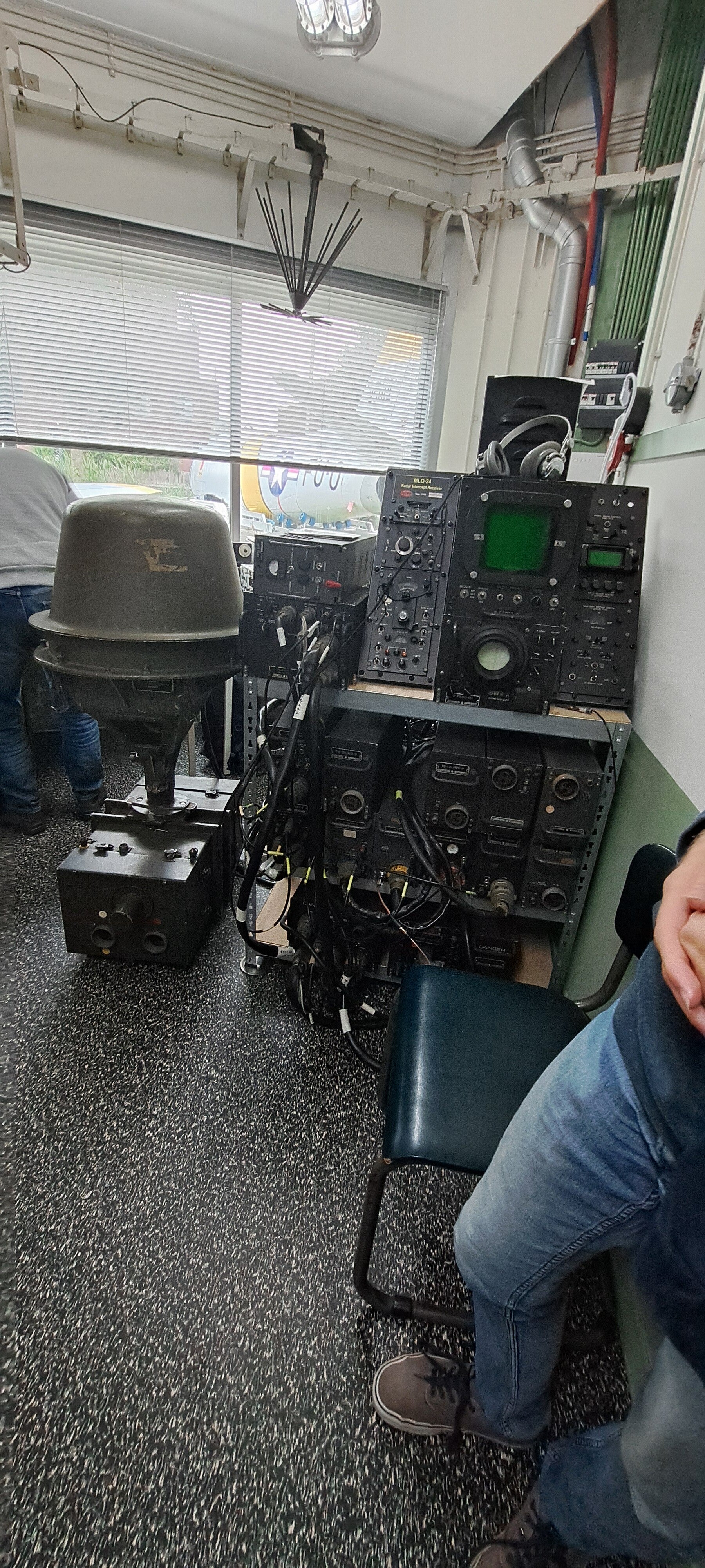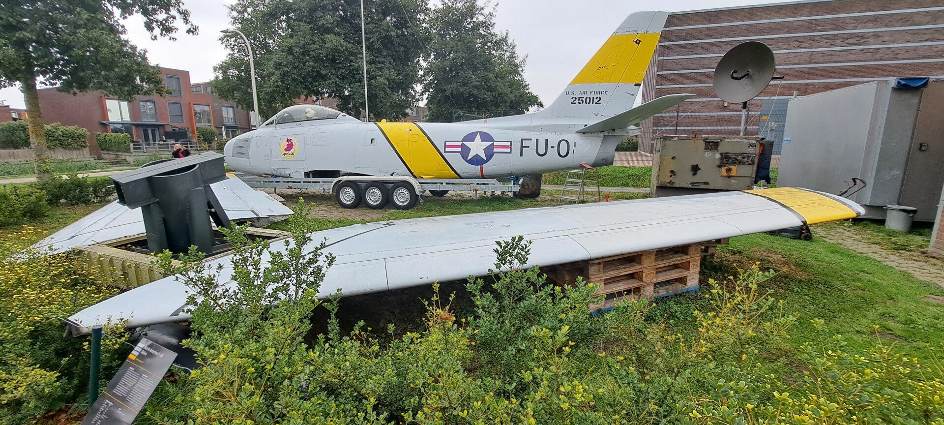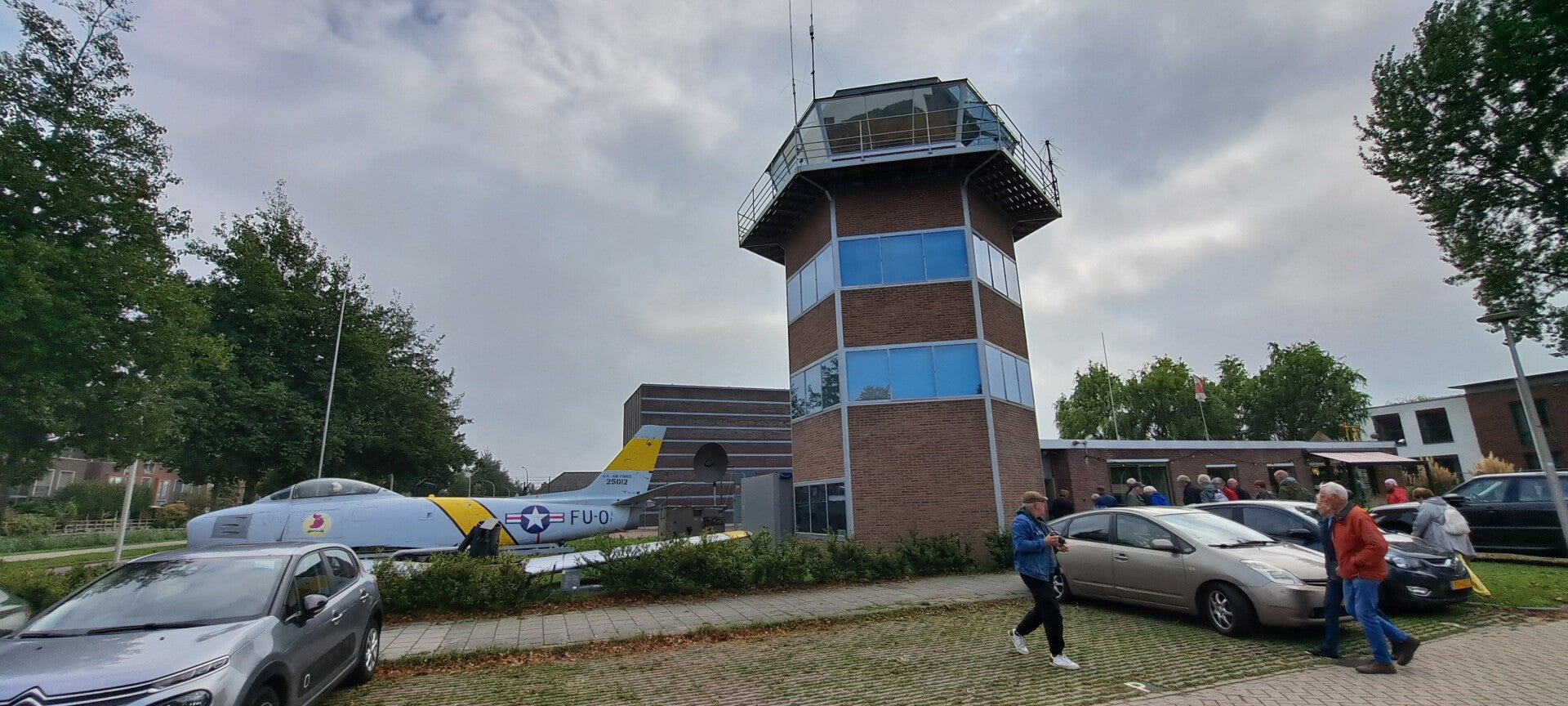 We gebruikten de lunch in de voormalige verkeerstoren van Ypenburg. Behalve broodje eten kon je er ook items bekijken uit de Koude Oorlog in de jaren '50. Ze hadden via Markplaats een North American Sabre F-86 op de kop getikt en naar de verkeerstoren gebracht op een trailer. Nu zijn ze bezig om het vliegtuig om te knappen en de vleugels er weer aan te zetten en het zo als eyecatcher bij de verkeerstoren neer te zetten.