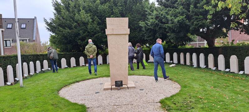 Vanaf vliegveld Valkenburg reed de bus naar het dorp Valkenburg waar we de veelbewogen gebeurtenissen in de meidagen van 1940 te horen kregen en een indrukwekkend bezoek brachten aan de Erebegraafplaats. De militaire erebegraafplaats van Valkenburg ligt midden in het centrum van de gemeente, naast de toren van de Hervormde kerk. Daar staan in een ruime boog de grafstenen van 35 in mei 1940 omgekomen Nederlandse soldaten.