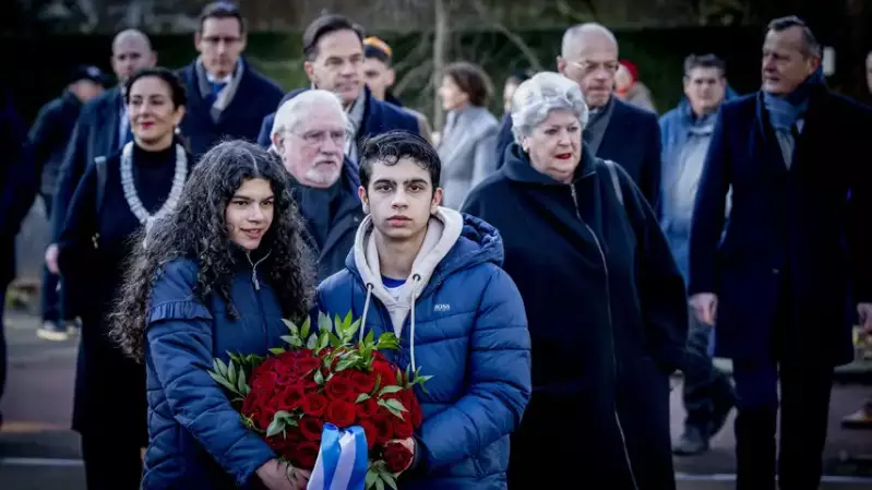 De herdenking van de Holocaust werd gehouden bij het Spiegelmonument 'Nooit Meer Auschwitz' in het Amsterdamse Wertheimpark. Bij de herdenking spraken onder anderen burgemeester Femke Halsema en Rutte.