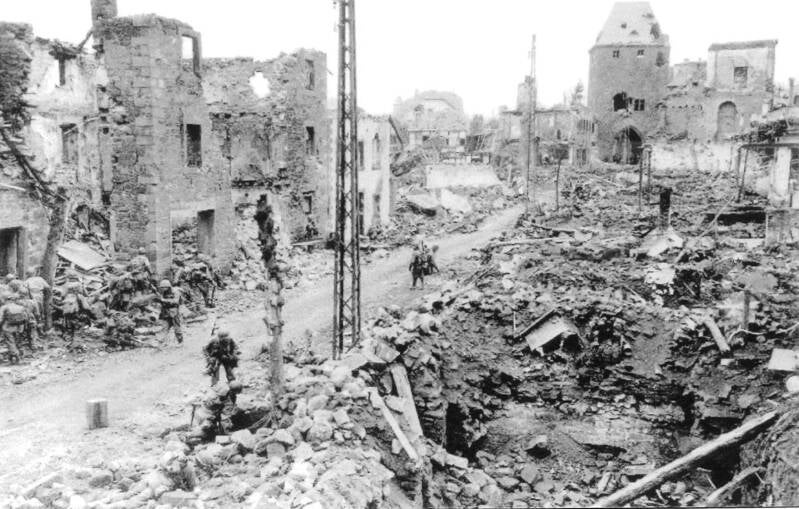 Op 12 september 1944 overschreden de eerste Amerikaanse militairen de Duitse grens in de buurt van het dorp Roetgen, net buiten Aken. Een aantal eenheden drong door tot het Huertgenwald om de rechterflank van de aanval te dekken. Omdat ze de taaiheid van Duitse verdediging en de onherbergzaamheid van het landschap onderschatten, leden de Amerikanen zware verliezen in een confrontatie die bekend is geworden als ‘De Slag om (het dorp) Schmidt’. p 12 september 1944 staken de eerste Amerikaanse troepen de Duitse grens over in de buurt van het dorpje Roetgen, net buiten Aken. In hun opmars naar Duitslands meest westelijke grote stad, drongen eenheden van het 1e Amerikaanse Leger door tot in het Huertgenwald in het Eifelgebergte ten zuiden van de stad, met het doel de flank van de aanval te dekken. Aanvankelijk waren de Amerikanen niet bij machte een beslissende doorbraak naar de Rijn te forceren. Tegen het midden van oktober deden ze een nieuwe poging. Om te beginnen probeerden ze het strategisch belangrijke dorp Schmidt ten noordwesten van het Rur Reservoir in te nemen. In de ochtend van 2 november 1944 begon de ‘Slag om Schmidt’, door de Duitsers de Allerseelenschlacht (de ‘Allerzielenslag’) genoemd. De 28e Amerikaanse Infanteriedivisie zette drie regimenten in voor de aanval op Schmidt. Op de tweede dag wist één van die regimenten de dorpskerk te bereiken. De twee andere regimenten hadden echter grote moeite om op te dringen door de dichte bossen en leden zware verliezen. De Amerikaanse eenheden in Schmidt kwamen vervolgens onder zwaar vuur van de Duitse 89e Infanteriedivisie en de 272e ‘Volks Grenadiers’ Divisie. De Amerikaanse tanks die werden ingezet om de aanval te steunen liepen vast door onbekendheid met het terrein. Bovendien hadden de Amerikanen de Duitse verdediging onderschat. Het was voor de Duitsers van groot belang het Huertgenwald in handen te houden als uitvalsbasis voor hun geplande offensief in de Ardennen. Alle geallieerde pogingen tot herbevoorrading mislukten. Op de kale bergrug tussen Vossenack en Schmidt werden de Amerikanen murw gebeukt door Duitse artillerie tot ze op 8 november het bevel kregen zich terug te trekken.