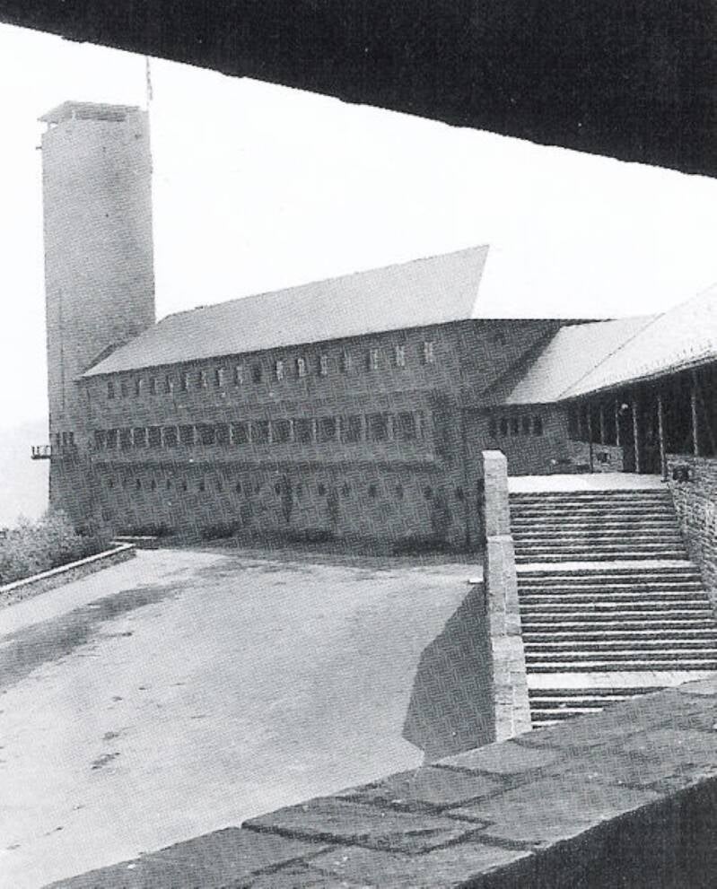 Deze foto maakte ik van het hoofdgebouw van de Belgische kazerne, onderdeel van Vogelsang. Kenmerkend is de gebruikte steensoort voor het gehele complex, dat gehaald is uit het Eifel gebergte.