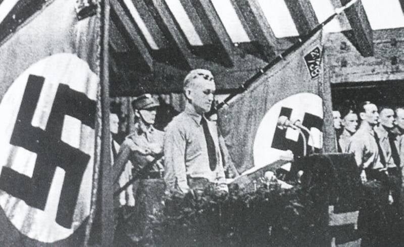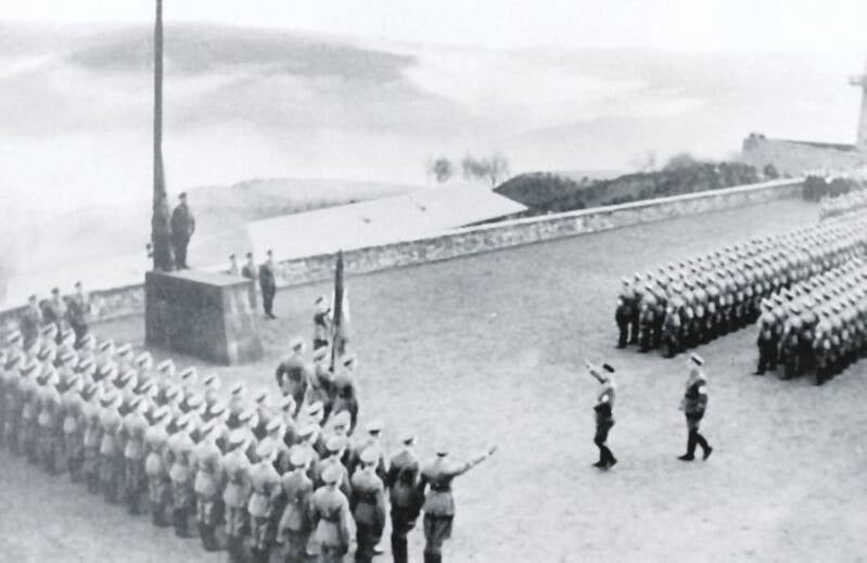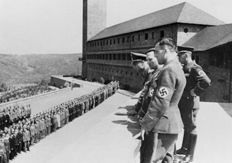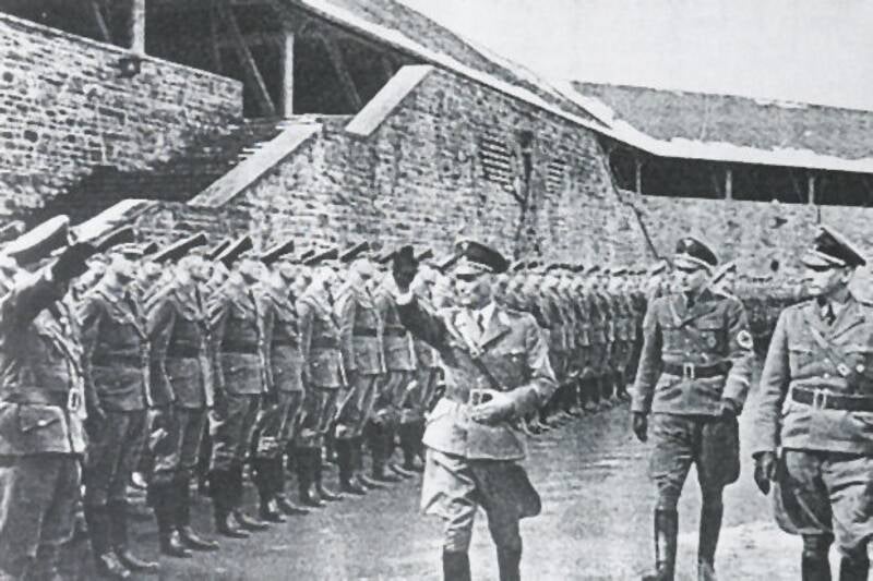Natuurlijk kwam de Fuhrer Adolf Hitler ook op bezoek op Vogelsang. Hij arriveerde in zijn Mercedes en onder het brengen van de nazigroet verwelkomde de leiding en de Junkers hem.