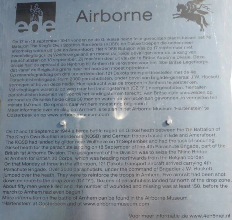 Deze tekst staat op de plaquette bij het Airborne monument op de Ginkelse Heide