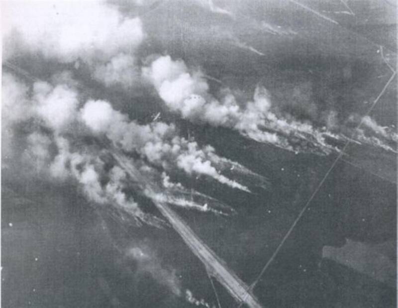Luchtfoto van de Ginkelse Heide. Deze foto is enkele ogenblikken voor de luchtlanding genomen. De heide is door mortiervuur in brand geschoten