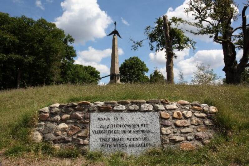 Bij het airborne monument aan de rand van de Ginkelse Heide, ter hoogte van de Schaapskooi, aan de Verlengde Arnhemseweg te Ede, vertelde onze gids over de gebeurtenissen op de Ginkelse Heide.