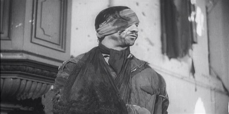 Majoor Lonsdale houdt een toespraak voor zijn troepen, uitgebeeld in de in 1946 opgenomen film Theirs is the Glory