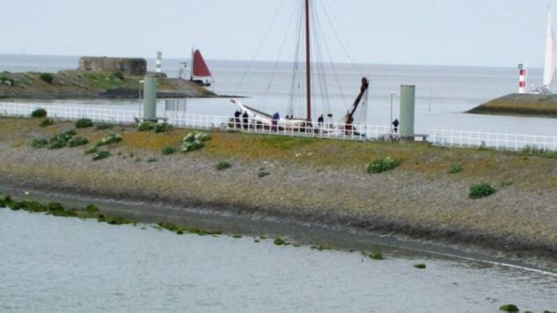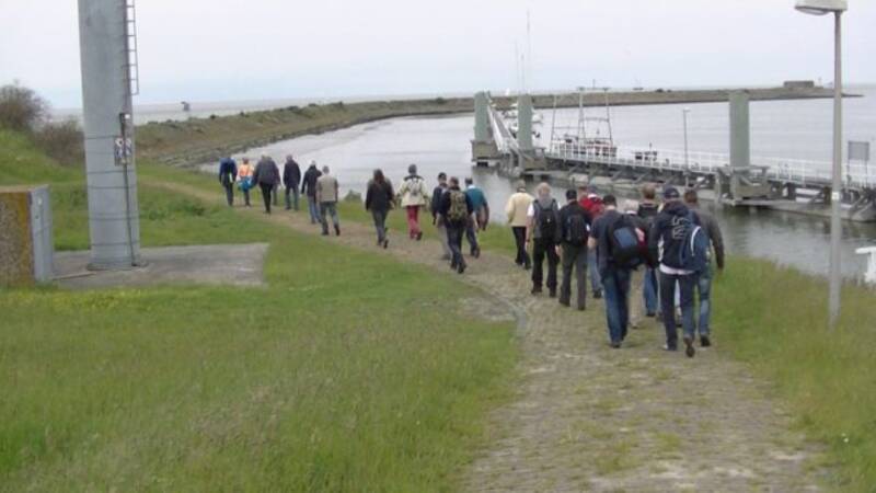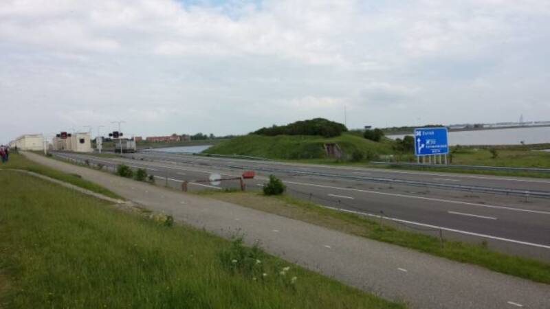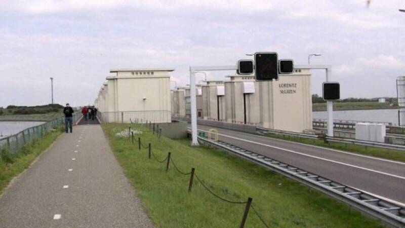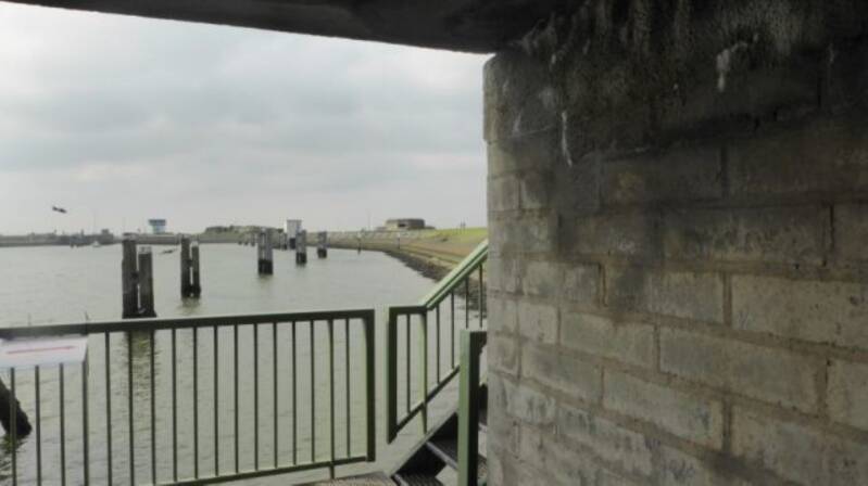 Om het museum te bereiken moesten we vanaf de parkeerplaats diverse trappen op en af lopen onder en langs de snelweg over de Afsluitdijk...