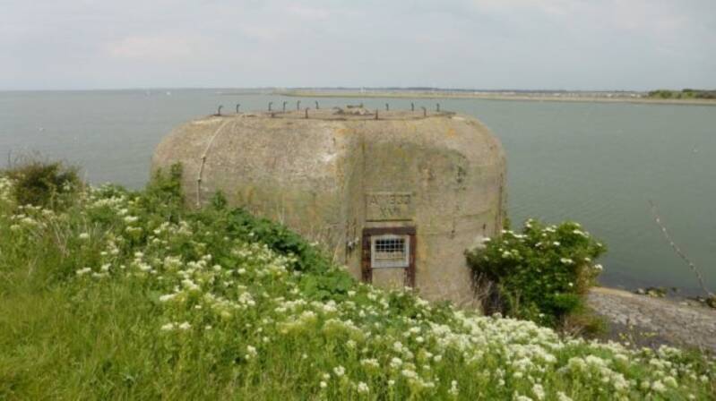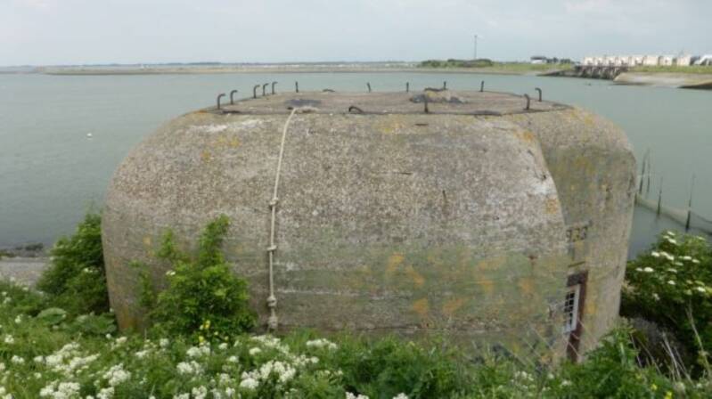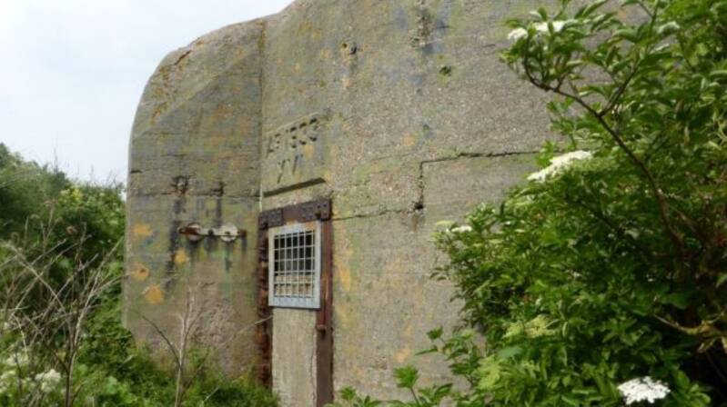 Het staartstuk van een Lockheed Hudson FK 790 staat als monument bij een Duitse bunker en herinnert aan de fatale vlucht in de nacht van 5 op 6 juli 1944.