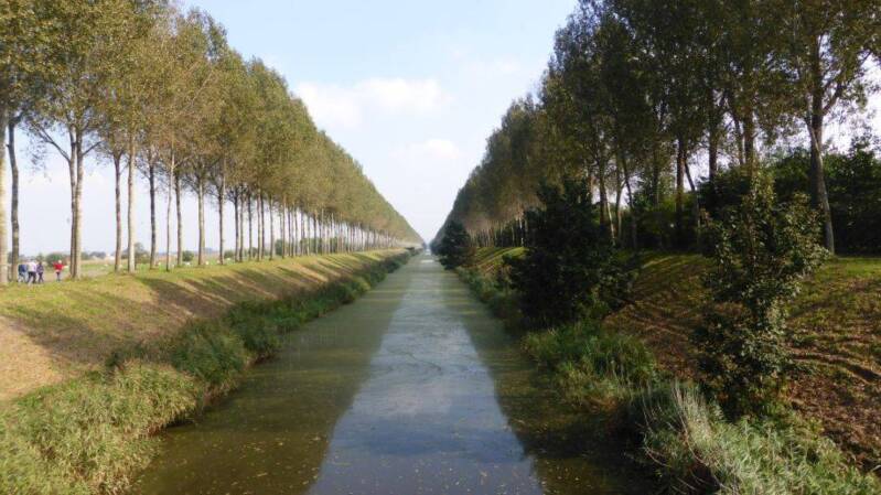 We lopen naar de Duitse bunker aan het Leopoldkanaal.