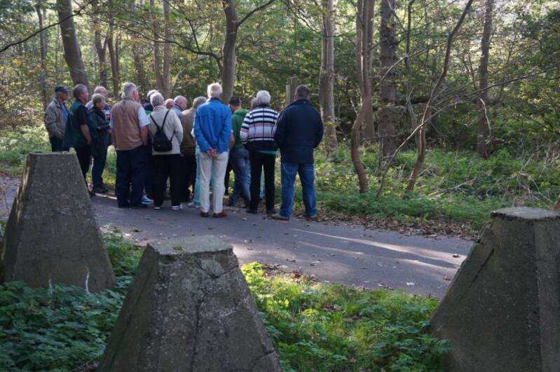 Onder leiding van onze gids John Daane, die zeer bekend is met de Duitse bunkers in Zeeland, bekijken we de verdedigingswerken in de duinen van Valkenisse.