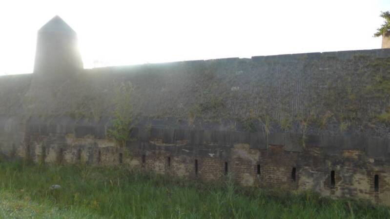 We bekeken de plaquette op de muur van vesting Oostbeer 1812.