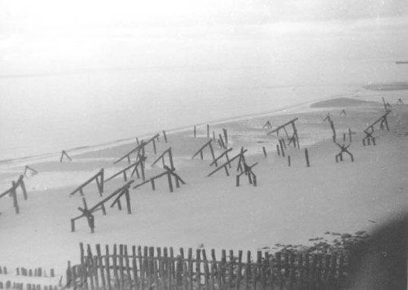Versperringen op het strand bij Vlissingen.