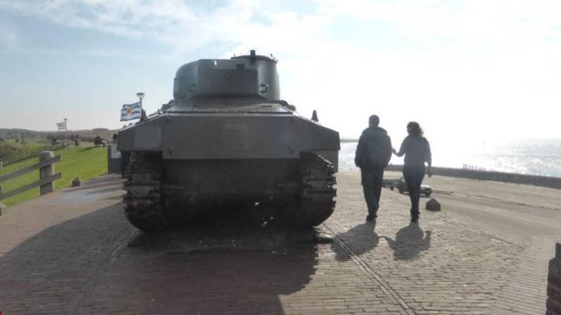 Monument met Sherman tank herinnert aan de geallieerde landing bij Westkapelle