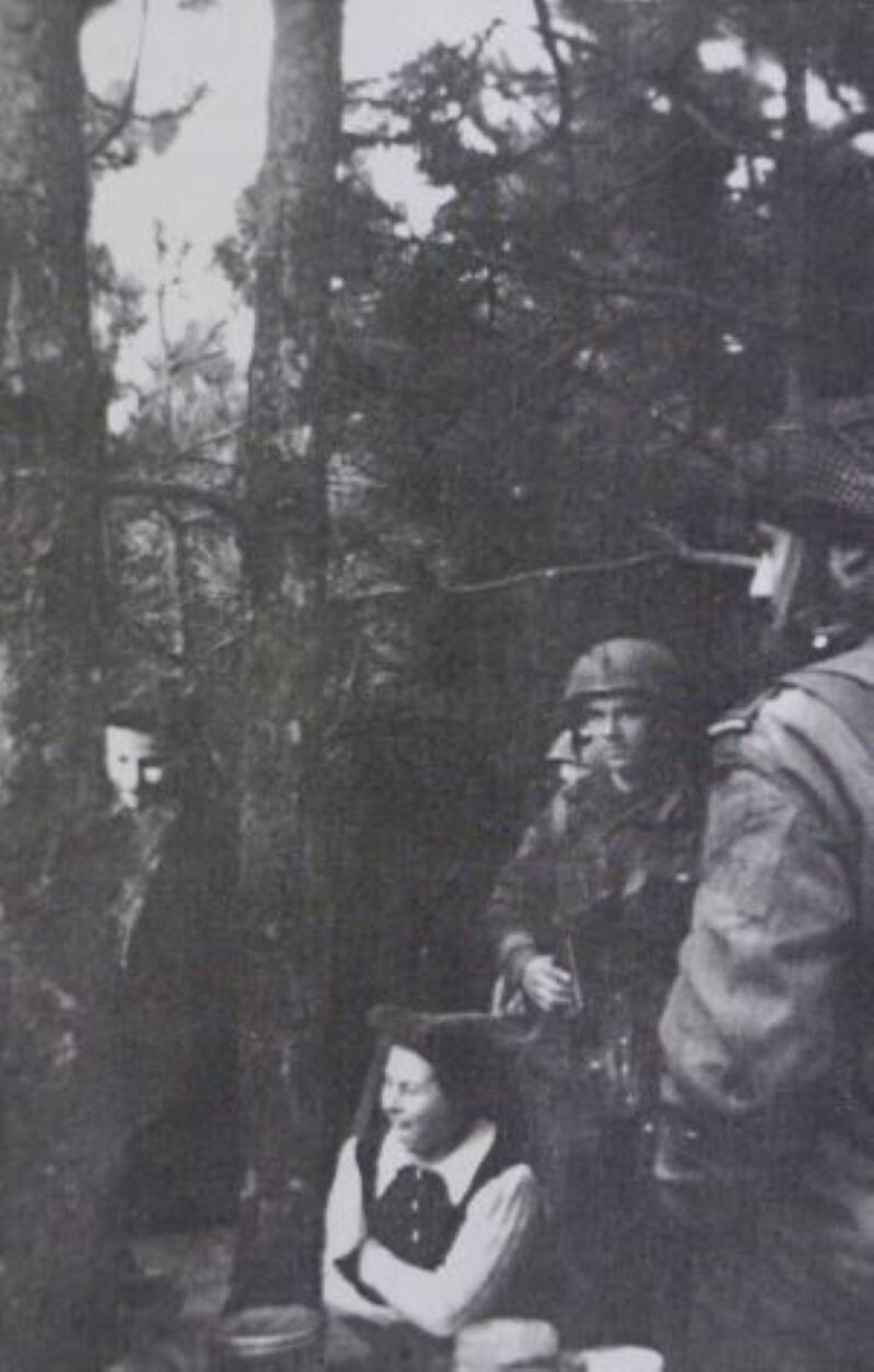 Boven het grensgebied van Drenthe en Friesland in de gemeenten Ooststellingwerf en Smilde werden ongeveer 60 parachutisten afgeworpen. Ze stonden onder bevel van de 33 jarige kapitein Pierre Sicauld. Hij raakte gewond tijdens de landing. Ze besloten na de landing in het bos te wachten tot het licht werd. In het bos ten zuiden van Appelscha verbleef de Joodse familie Lezer uit Amsterdam, die contact maakte met de parachutisten. Op deze opname de famlie Lezer bij de Franse parachutisten.