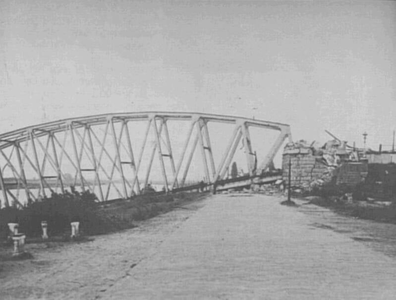 Deze poot van de Catherine Miller spoorbrug staat nu bij de nieuwe spoorbrug als een gedenkteken.