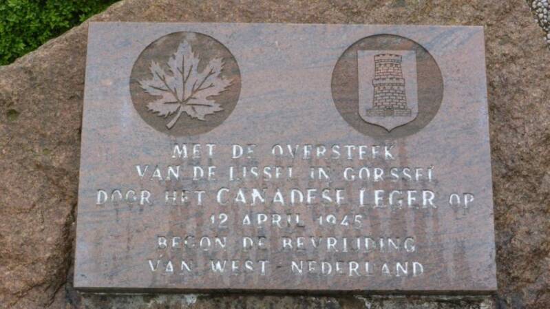 Bij Gorssel staken de Canadezen de IJssel over. We staan hier bij het punt waar ze overstaken. Nu staan er een paar personenauto's, maar toen was deze smalle weg vol met militaire voertuigen en manschappen. De Canadezen staken bij Gorssel naar Wilp over en vormden daar een bruggenhoofd.