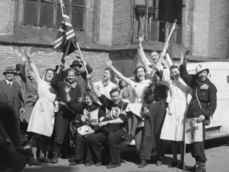 Uitzinnige vreugde onder jonge Deventenaren in de eerste uren na de bevrijding.