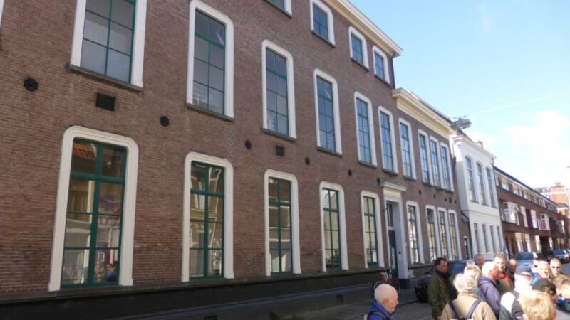 In dit gebouw aan de Hofstraat zat de meisjesburgerschool, maar tijdens de bezettingsjaren kreeg dit gebouw een minder vreedzame functie. Het werd een kazerne van de Kriegsmarine. Toen het Canadese leger de stad binnen drong, verlieten de soldaten die er waren gelegerd het gebouw en werd het in staat van verdediging gebracht. We hoorden over het verhaal van Lloyd Daniel die vanuit een woning aan de Hofstraat met zijn Bren Gun op de Duitse Marinekazerne begon te vuren en John Shaw van de C Company Calgary Highlanders, die als één van de eersten de Marinekazerne betrad en tegenover een Duitse marine-officier stond, die zich wel wilde overgeven, maar alleen aan een meerdere in rang.