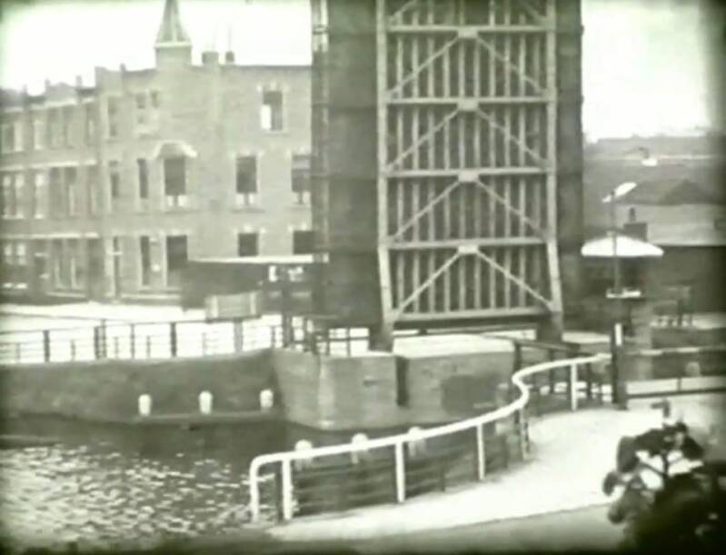 Het CJMV gebouw aan de Spilsluizen toen en op 18 april 2015, 70 jaar later. Links naast het gebouw is een brandgang van waaruit een Canadese soldaat een PIAT granaat afschoot op een stuk Duits geschut FLAK-vierling, die aan de overkant, dus ongeveer op het punt vanwaar ik deze foto nam, stond opgesteld. Die FLAK bezorgde veel overlast want het geschut stond op een strategisch punt opgesteld aan de 1e Drift. Met zijn brandgevaarlijke en pantserdoorborende munitie beheerste het stuk de ingangen van de straten aan de noordzijde waar militairen van de Le Regiment de Maisonneuve posities hadden ingenomen. De FLAK werd uitgeschakeld op maandagochtend 16 april 2015 rond 10.00 uur.