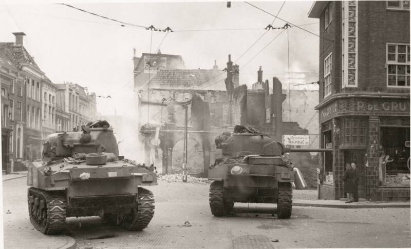 Canadese soldaten in de Oranjewijk op 15 april 1945