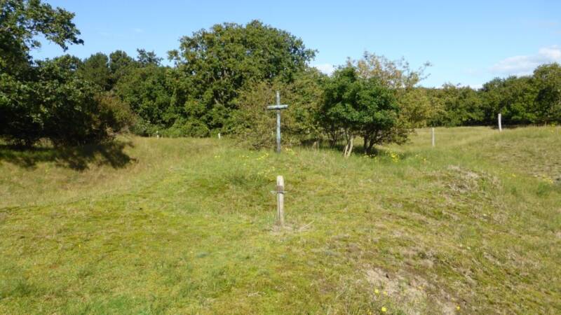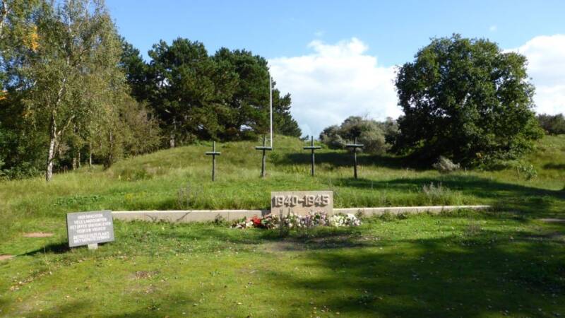 - Voor het duin, waarachter de meeste executies plaats vonden, staan vier fusilladekruisen. Het zijn replica's van de oorspronkelijke houten kruisen, die in 1981 zijn overgebracht naar het Fries verzetsmuseum in Leeuwarden. Voor deze kruisen een betonnen muur met de jaartallen 1940-1945. Links hiervan een eenvoudige gedenksteen met de tekst: