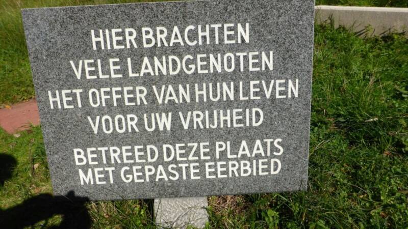 "Hier brachten vele landgenoten het offer van hun leven voor uw vrijheid. Betreed deze plaats met gepaste eerbied."