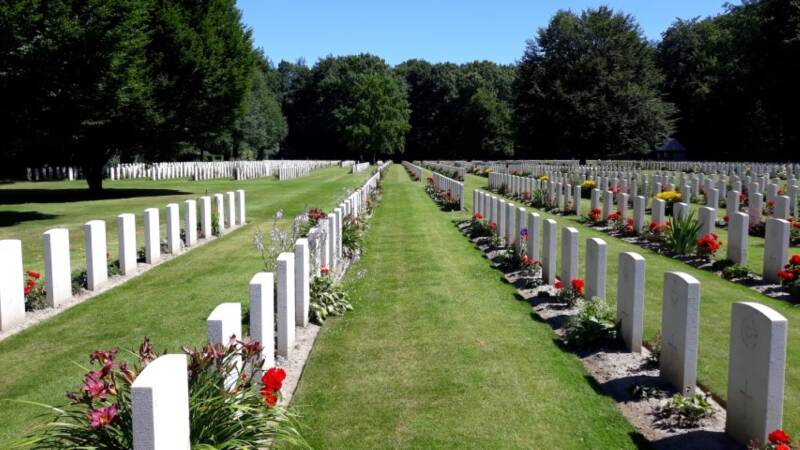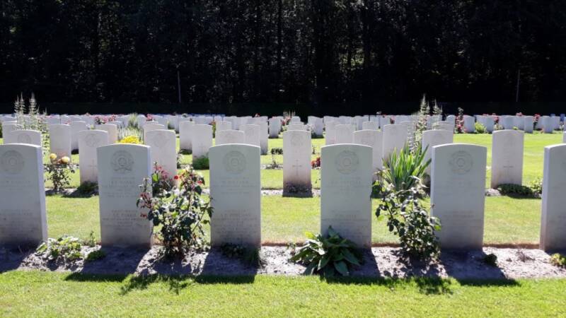 Wat me vooral bij is gebleven is het bezoek aan twee oorlogsbegraafplaatsen. Het Reichswald Forest War Cemetery bij Kleef en de Duitse begraafplaats bij Weeze. Ik was onthutst door de enorme tegenstelling tussen beide begraafplaatsen. De Britse begraafplaats zoals we gewend zijn: tot in de puntjes verzorgd.