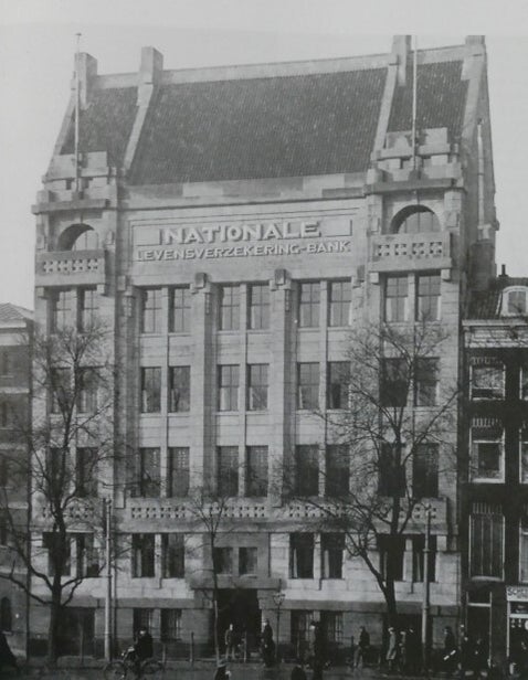 Het gehavende gebouw van de Nationale Levensverzekeringbank.