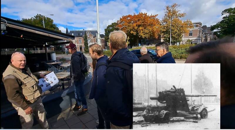 Onze gids Erik Jellema, luitenant-kolonel der Infanterie buiten dienst leidt ons tijdens deze wandeltour door een gedeelte in de binnenstad van Nijmegen om daarna in detail de gevechten in het Hunnerpark en de Valkhof te bespreken.