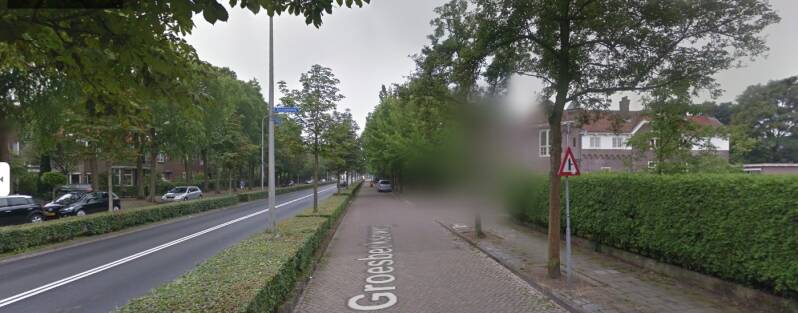 Vergelijkingsopname van de Groesbeekseweg in Nijmegen, ter hoogte van huisnummer 230 nu.