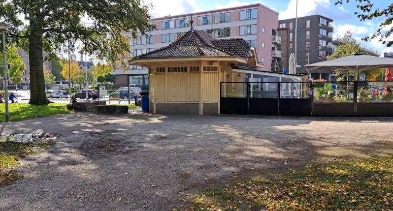 Aan de kant van Kelfkensbos staat ook een kiosk die in 1911 door Jan Jacob Weve is gebouwd als tramwachthuisje.