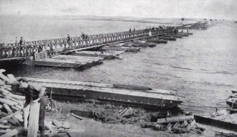 De genie begon met het aanleggen van bruggen achter de dekking van een rookgordijn. Duitse artillerie vuurde, zonder zicht, door het rookgordijn heen. Desondanks werd een groot aantal baileybruggen aangelegd.