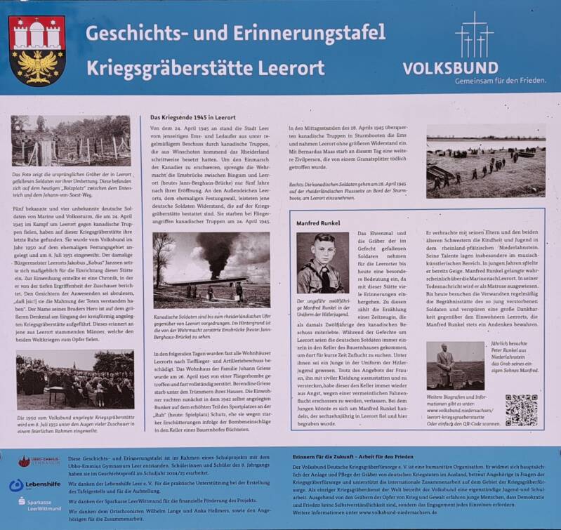 In het gehucht Leerort onder de rook van Leer ligt de kleinste begraafplaats met kriegsgräber. De grootste bevindt zich in Ysselstein (Limburg). Heel verdrietig is dat zich op deze begraafplaats het graf bevindt van de twaalfjarige Manfred Runkel. Een kind nog. Misleid door de nazi-propaganda en daardoor bij de Hitlerjugend gegaan. Maar in plaats van sport en spel, wat bij zijn leeftijd hoorde, sneuvelde hij tijdens de gevechten bij Leerort.