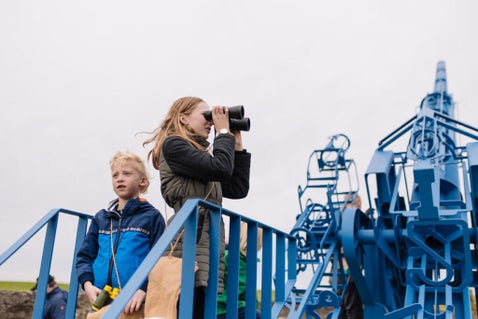 Nu zijn het kinderen die staan bij een replica van het kanon op het dak van de bunker.