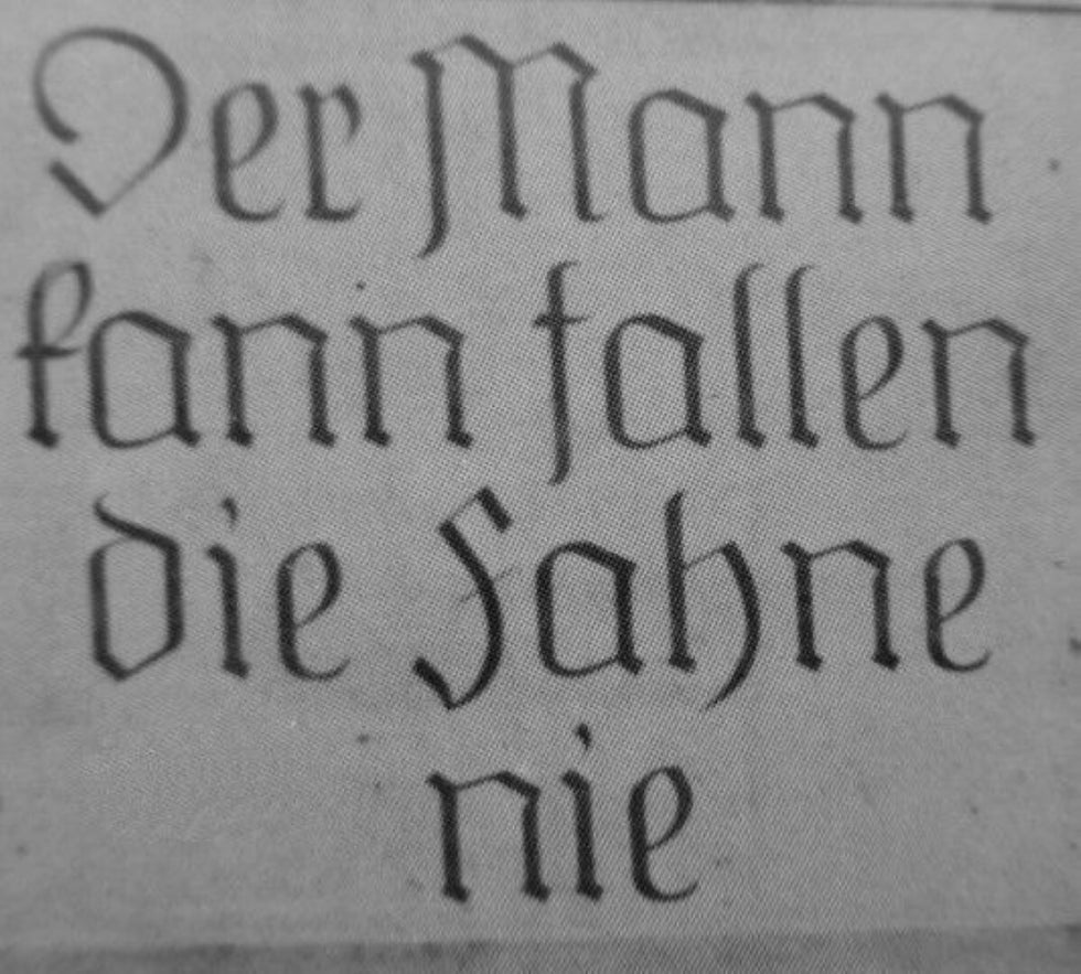 'Der Mann kann fallen, die Fahne nicht'. Nazislogan op een muur in Metz.