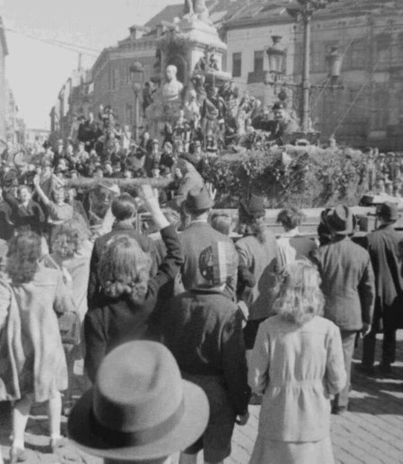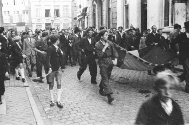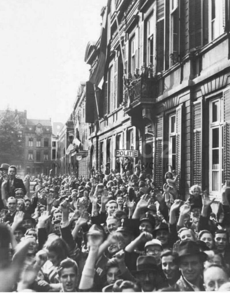 Vreugde onder de bevolking van Maasticht over de bevrijding door de Amerikanen.