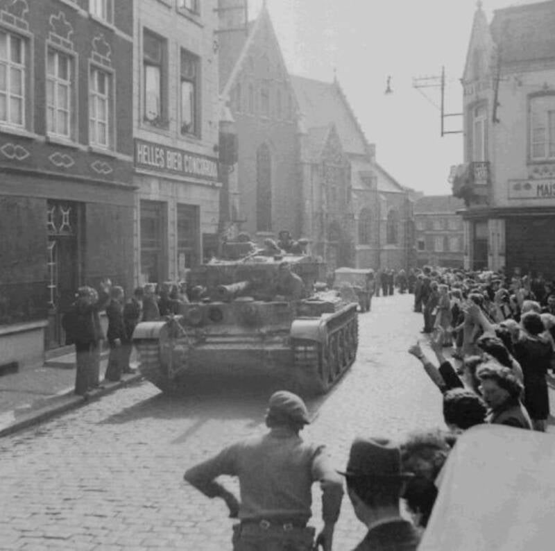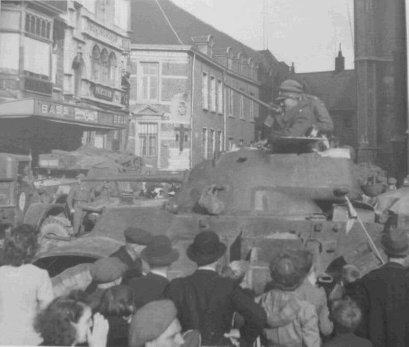Toen de eerste Britse tanks de stad Gent binnenrolden, wachtte hen een tumultueus welkom. Ze kregen armen vol bloemen en bier en wijn vloeiden rijkelijk. Generaal Gerald Verney CO van de 7th Armoured Division kwam op 8 september Gent binnen in een Staghound.