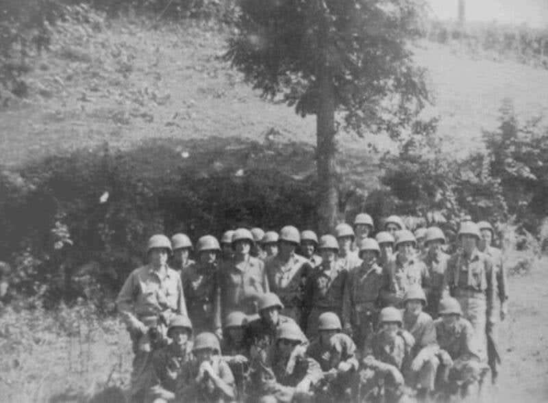 Officeren van het 113th FA Battalion bij Saint-Romphaire, Frankrijk, augustus 1944. Van links naar rechts, eerste rij: kapt. Harold Horner, maj. S.L. McCall, lt. Wade S. Kolb, lt. Edward L. McMullen, kapt. Abbot C. Weatherly, kapt Howard L. Krall, kapt K. Van Heely, lt. Walter J. Horan, lt. R.H. Bradley. Tweede rij: kapt. William B. Carlton, lt. George P. Eldridge, kapt. George R. Springer, kapt. Hyman M. Bizzel, kapt. Clement T. Ziegler, lt. Marvin L. Woodruff, lt. Elmer C. Rosenberger, lt. Russell D. Stewart, lt. Harold E. Hunt, maj. Wiley C. Rodman. Derde rij: lt. Adrian A. VanHook, lt. Bulla ??, lt. ??, lt. ??, kapt. Robbins ??, kapt. Wendell A. Roberts, kapt. Bernhard J. Levy, lt. William R. Fuller, WOGJ Howard S. Maney, lt. Norman G. Stroud. Niet aanwezig op de foto: lt.-kol. Edward F. Griffin, kapt Richard J. Binnicker, lt. Paul E. Griffin, lt. Bob Spicer, lt. Robert C. Anderson, WOJG Astor C. Lucas.