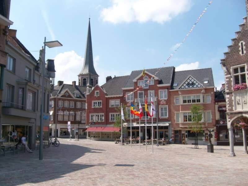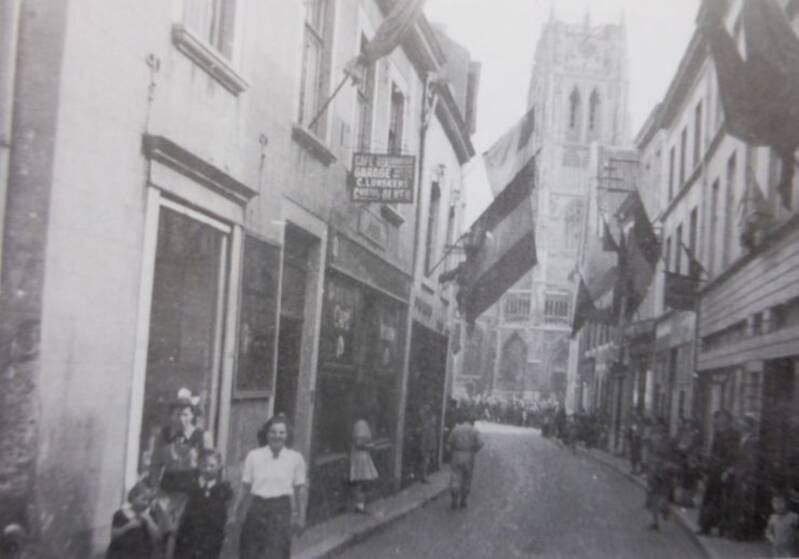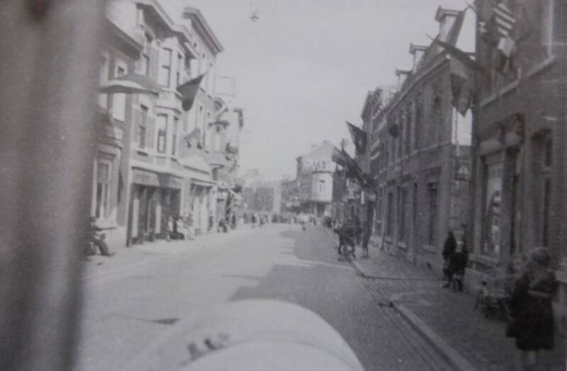 Dwars door Tongeren in België tijdens de onstuimige achtervolging op de zich terugtrekkende Duitsers.