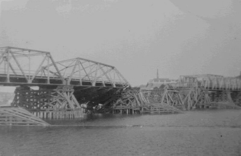 Het XIX Corps van de genie verrichtte wonderen rond Maastricht, waar alle bruggen over de rivieren en kanalen waren vernield. Het 234th Engineer Combat Battalion stak de rivier ten zuiden van Visé over via een treadwaybrug, voordat het met de 30th Division vanaf de oostoever een brug naar Maastricht aangelegde. Dit alles werd gerealiseerd in één dag, 14 september 1944. Hier een verwoeste brug over de Maas bij Visé, ten zuiden van Maastricht.