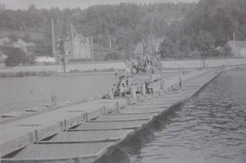 De pontonbrug over het Albertkanaal, aangelegd door het 234th Engineer Combat Battalion.