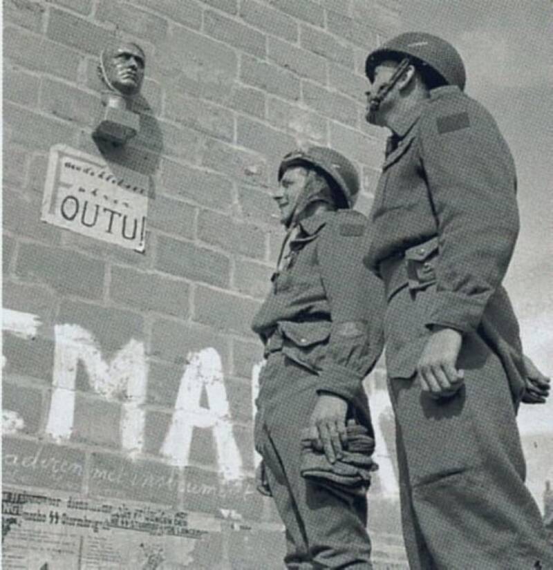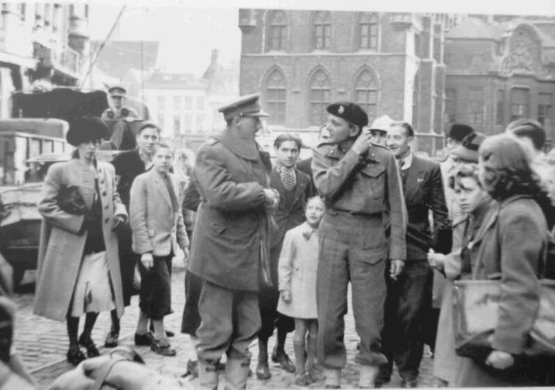 Canadese soldaten bekijken Brugge nadat ze de stad hebben bevrijd.