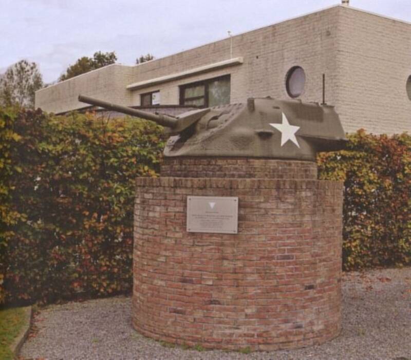 Monument - met Staghound-koepel - ter nagedachtenis aan de soldaten van de Belgische Piron Brigade die vielen bij de bevrijding van Leopoldsbrug en Heppen op 11 en 12 september 1944, toen zij vochten met de British 8th Armoured Division.