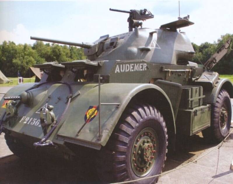 Een Staghound MK I Audemer in de kleuren van de Brigade Piron in het Tankmuseum in Kapellen.
