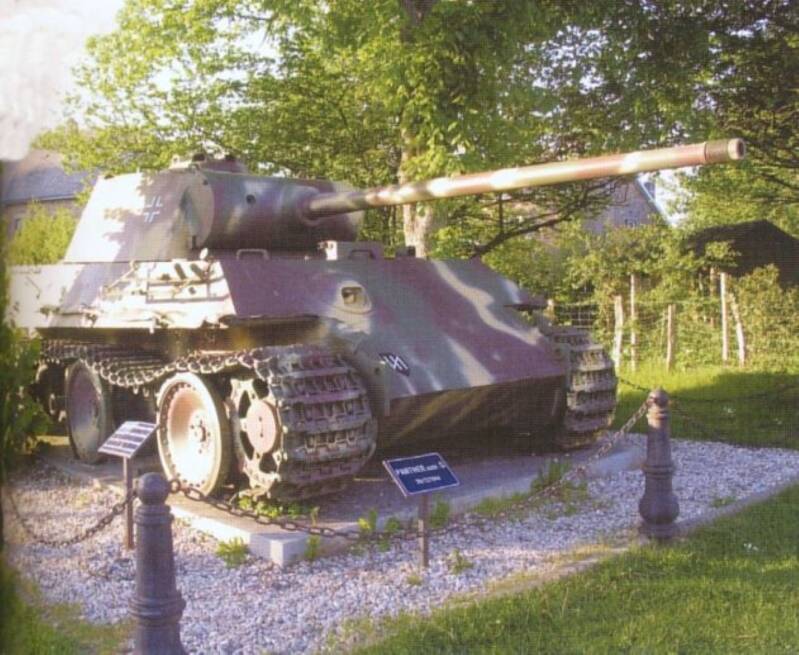 Houffalize werd op 19 december ingenomen door de 116e Panzer Division. Deze Panther G werd uitgeschakeld toen het Eerste en Derde leger het offensief probeerden te keren. Volgens lokale verhalen werd hij door bomexplosies de rivier in gekieperd en kwam de bemanning daarbij om. De Panther werd op 20 september 1948 door de genie uit de Ourthe gehaald en de heuvel op getakeld om te dienen als monument, zoals blijkt uit de foto's van nu.