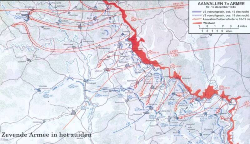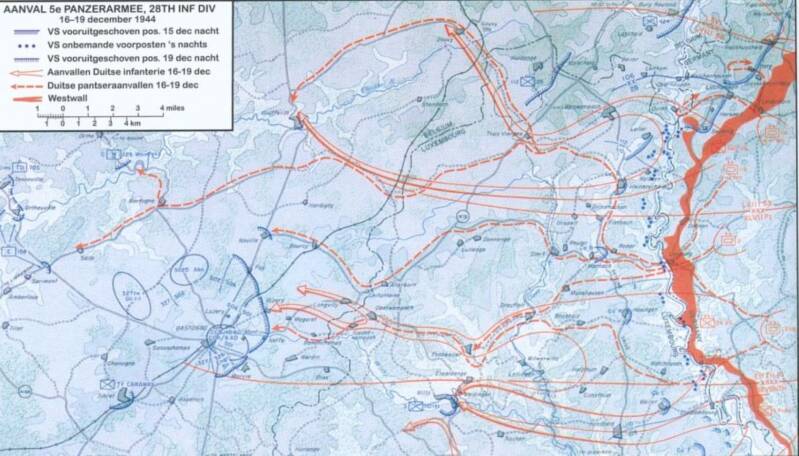 Het Duitse Zevende Leger bestond uit e 212e, 256e en 352e divisie en de 5e Fallschirmjäger Division - zonder pantservoertuigen of zware wapens. De aanval op de stellingen vvan de US 4th Infantry Division kwam als een verrassing, maar door hardnekkig verweer en uitstekend artilleriewerk, naast steun van de 10th Armored, werd weinig terrein veroverd. De Amerikaanse verliezen waren groot, maar het Zevende Leger kon het Amerikaanse Derde Leger niet tegenhouden, dat Bastogne ontzette en noordwaards trok naar Houffalize.